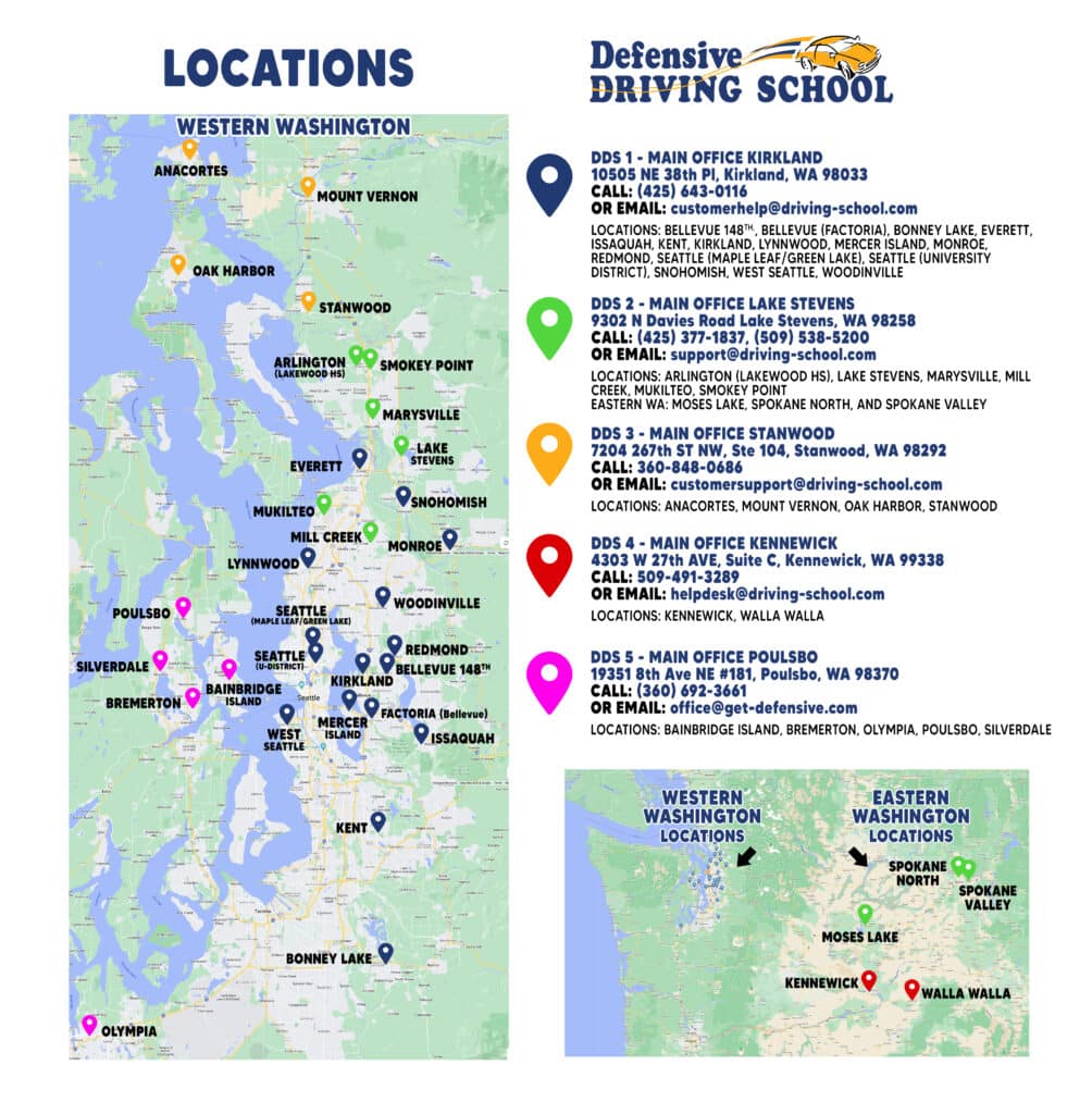 Bellevue (148th/near Microsoft), Bellevue (Factoria), Bonney Lake, Everett, Issaquah, Kent 240th, Kirkland/Yarrow Point, Lynnwood 196th, Mercer Island, Monroe, Redmond, Seattle (Maple Leaf/Green Lake), Seattle (U-District), Snohomish, West Seattle, Woodinville