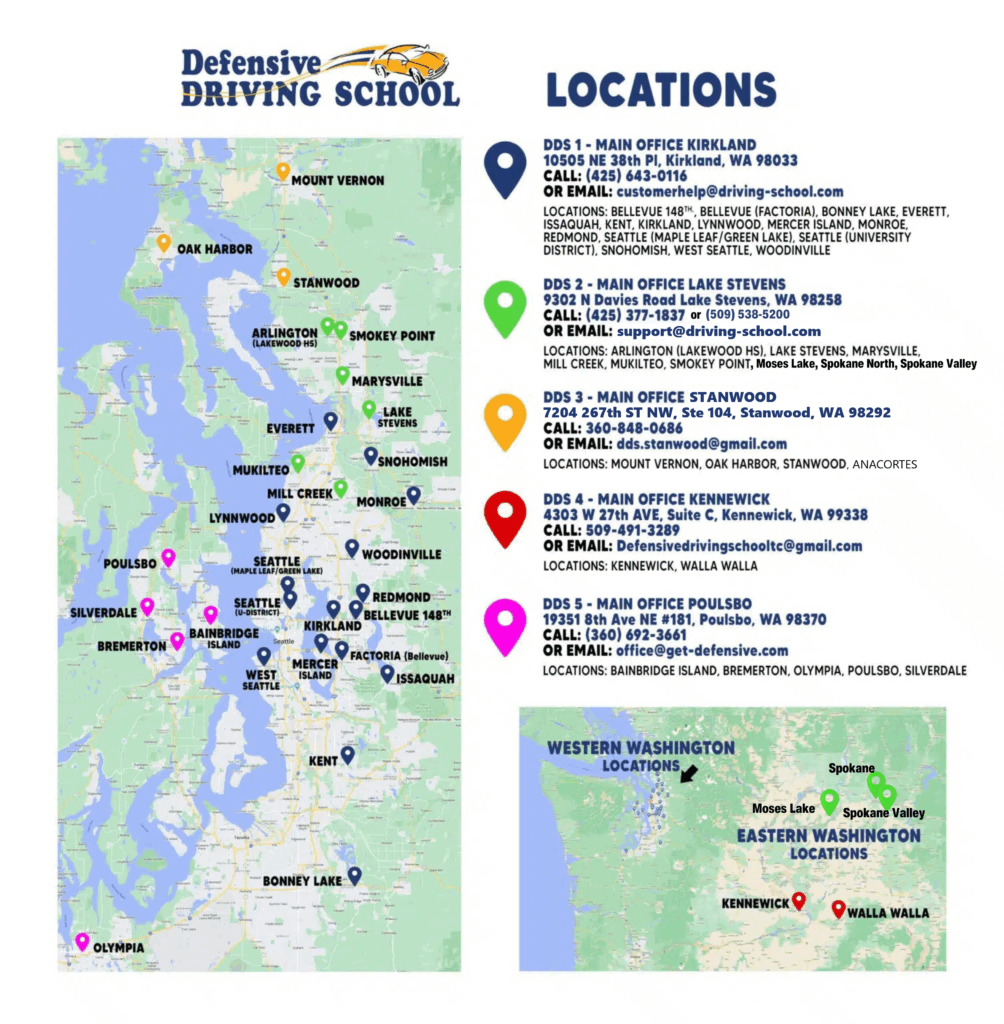 Bellevue (148th/near Microsoft), Bellevue (Factoria), Bonney Lake, Everett, Issaquah, Kent 240th, Kirkland/Yarrow Point, Lynnwood 196th, Mercer Island, Monroe, Redmond, Seattle (Maple Leaf/Green Lake), Seattle (U-District), Snohomish, West Seattle, Woodinville